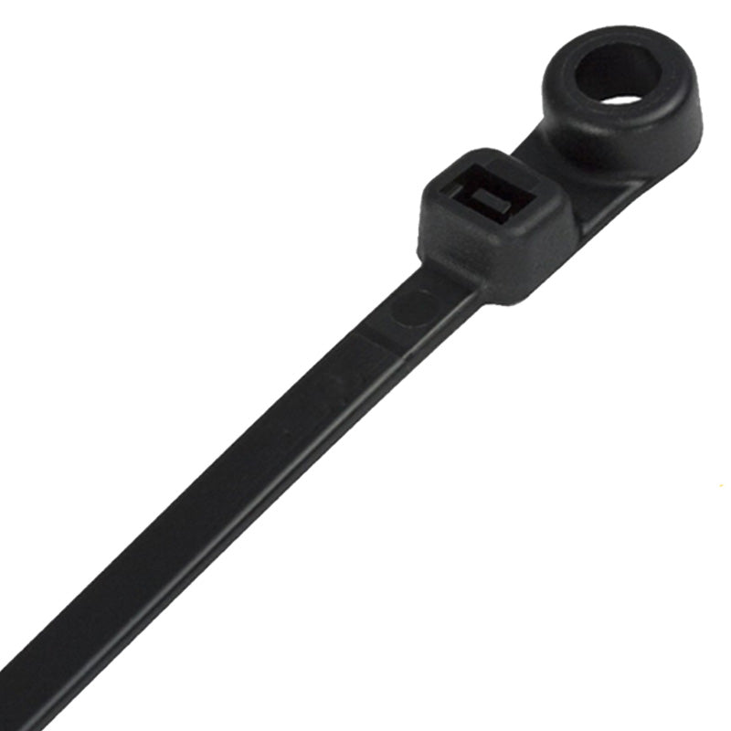 Cable Tie Screw Mount 50 lb 8" #10 Screw, PA66 Black 100pkg