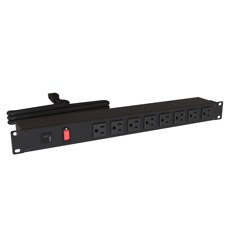 Hammond 1582 PDU (1P) 15A/125V w/Switch FO (8) 5-15R P/L5-15P 15ft BK