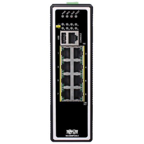 NGI-M08POE8-L2 Tripp Lite Switch 8-Port Managed Industrial Gigabit Ethernet Switch - Layer 2, 1 Gbps, PoE+ 30W, -40° to 75°C, DIN Mount