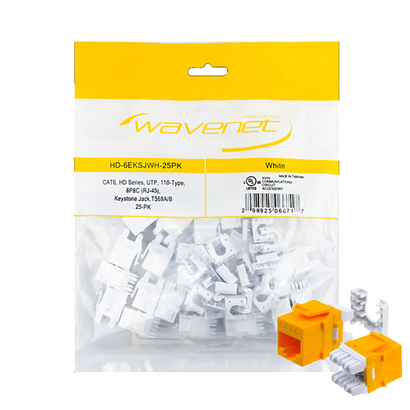 Wavenet Keystone Jack CAT6 HD Series UTP 180 degree 110-Type T568A/B Yellow 25PK