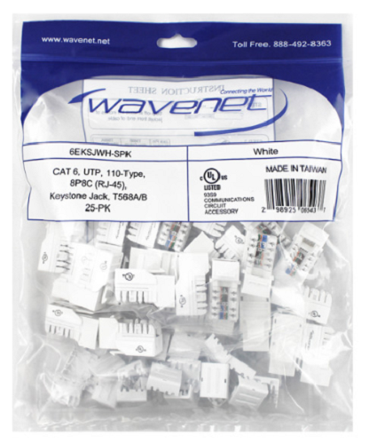 Wavenet Keystone Jack CAT6 UTP 90 degree 110-Type T568A/B - WHITE 25PK