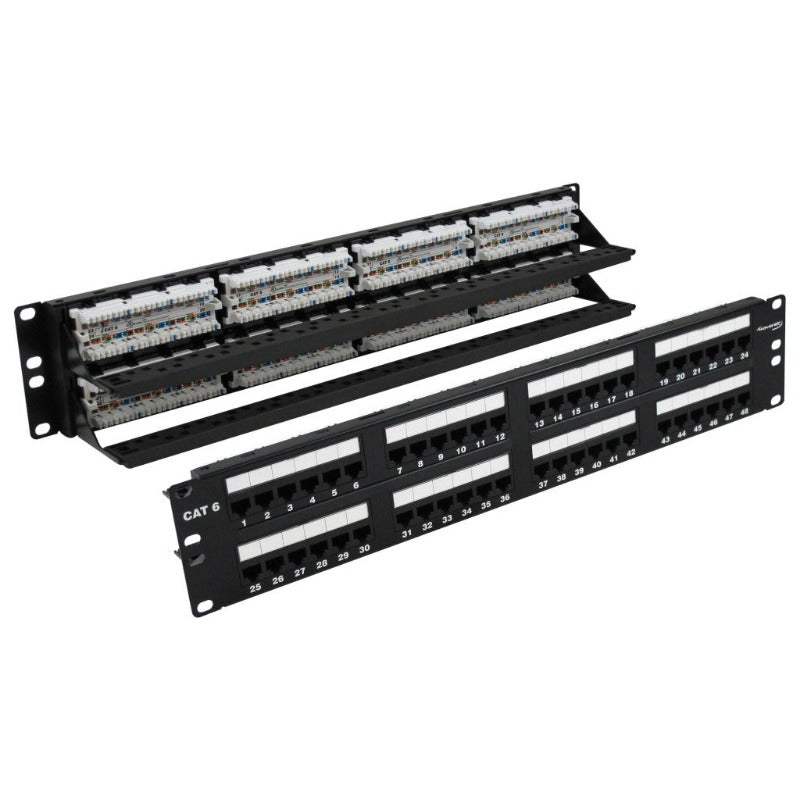 48‐port Category 6 2U racks and cabinets mountable patch panel is ideal for small‐to‐medium sized installations. 48‐port version offers